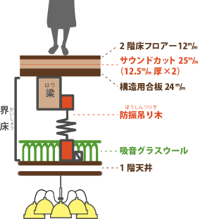一方、気密性の高い住宅は建物内部で発生する音の抜け道が無く、反響しやすい問題があります。特に二世帯住宅の場合、上下階の世帯間においてプライバシーの問題や音によるストレスの原因となる場合があります。