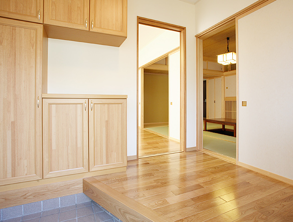 こちらの住宅を建てる際には、玄関が鬼門にかからないよう吉祥となる位置に配したり、それにあわせてリビングの位置も工夫しました。