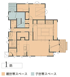 こちらのお宅では、1階を親世帯、2階を子世帯のスペースとしており、普段は自分たちのペースでの生活を、そして時には家族そろって交流を楽しむという快適な暮らしを送っています。