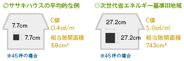 ササキハウスでは、全棟気密測定を行い、C値が0.5c㎡/㎡以下を保証しております。