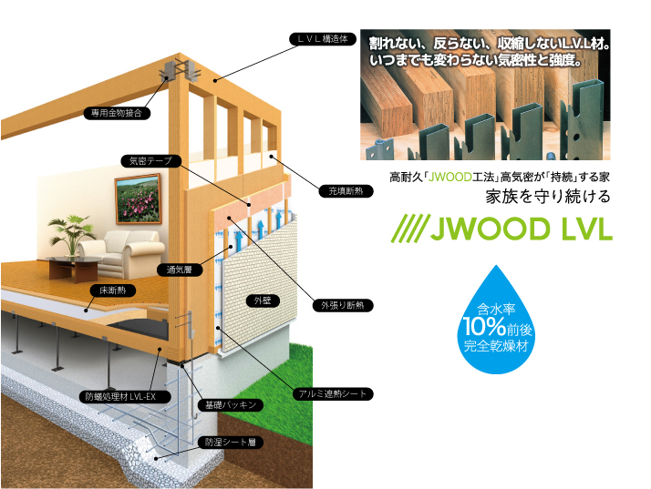 断熱性能をいつまでも「持続」させる「LVL材」+「専用金物」+「ベタ基礎」