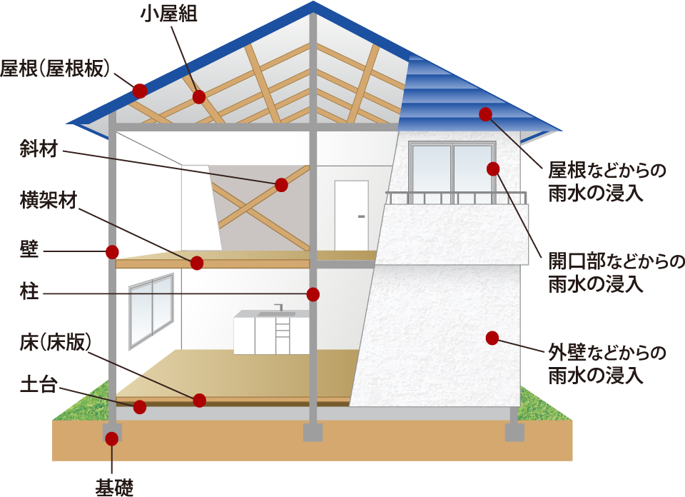 - ※10年目までの新築住宅瑕疵保険による保証と、11年目以降の保証では、一部内容が異なります。